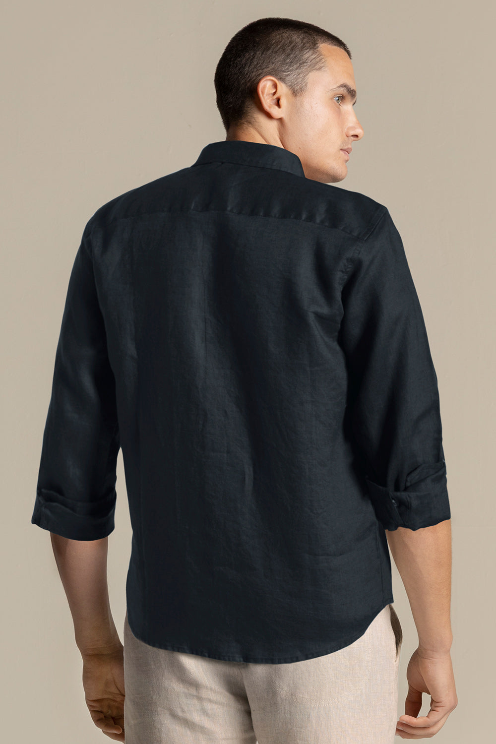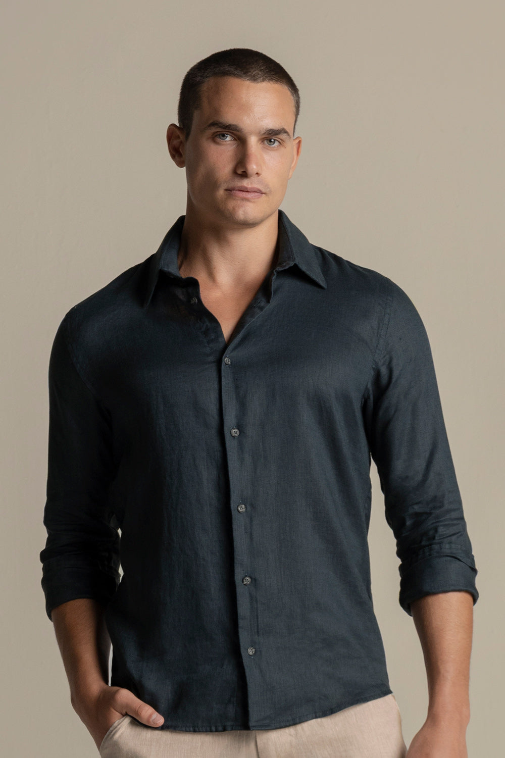 Petrol blue linen fiji shirt, long sleeves, slim fit, and classic collar. Colour blue, Ref. SH48A61