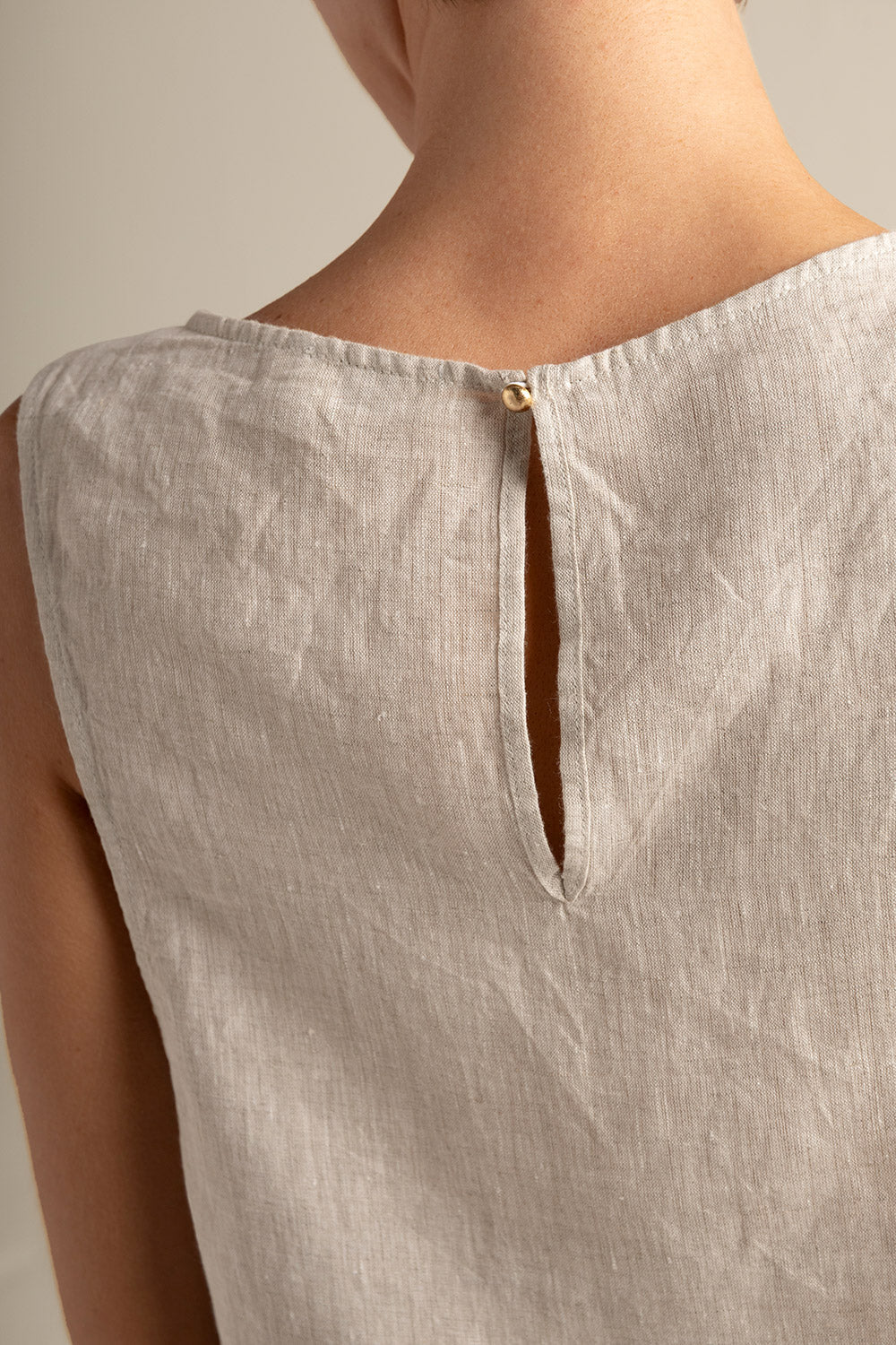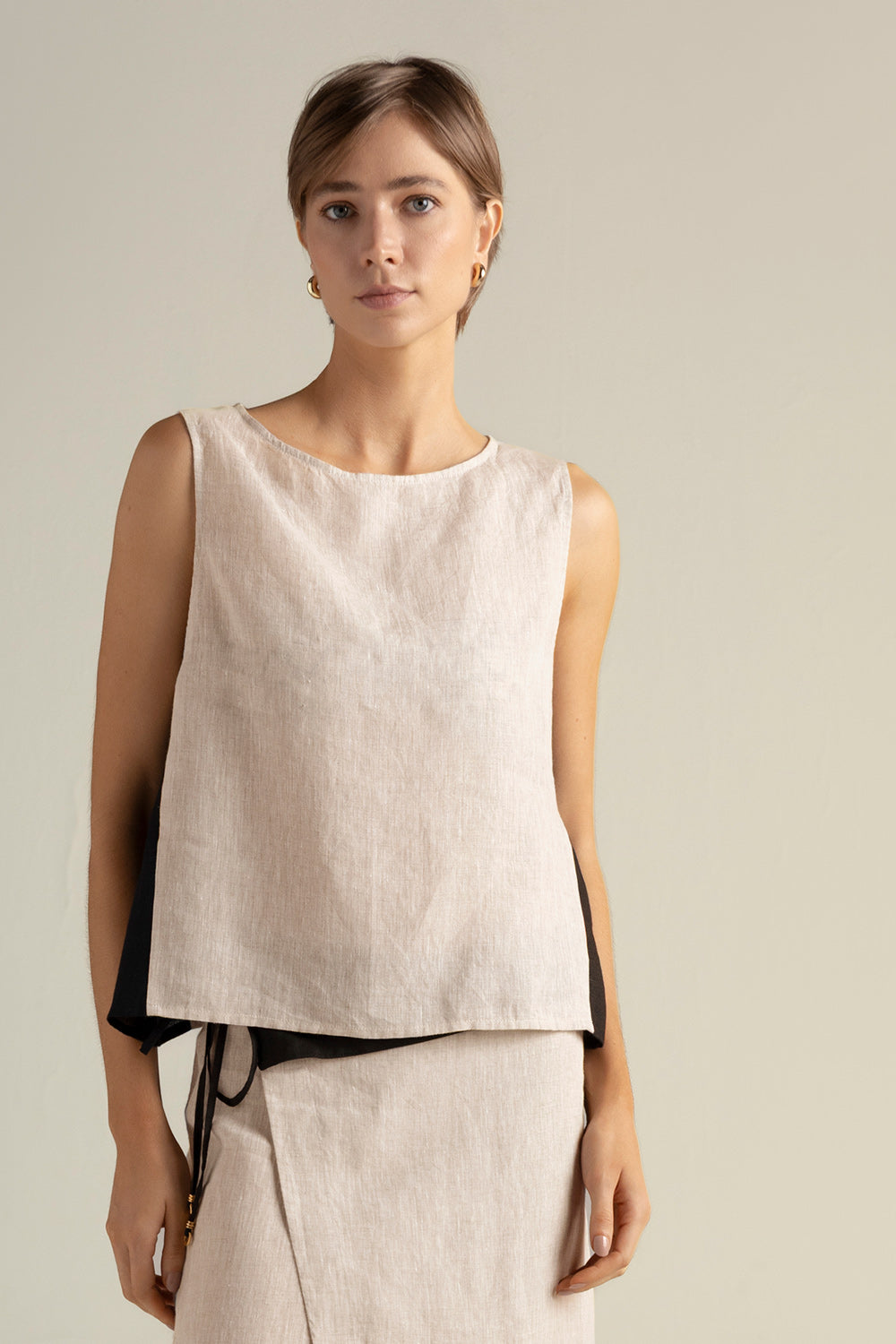 Short sleeves color block top in 100% khaki and black linen. with a round neckline and back closure with buttons.. Color kahki/ black, Ref. 0A84C61