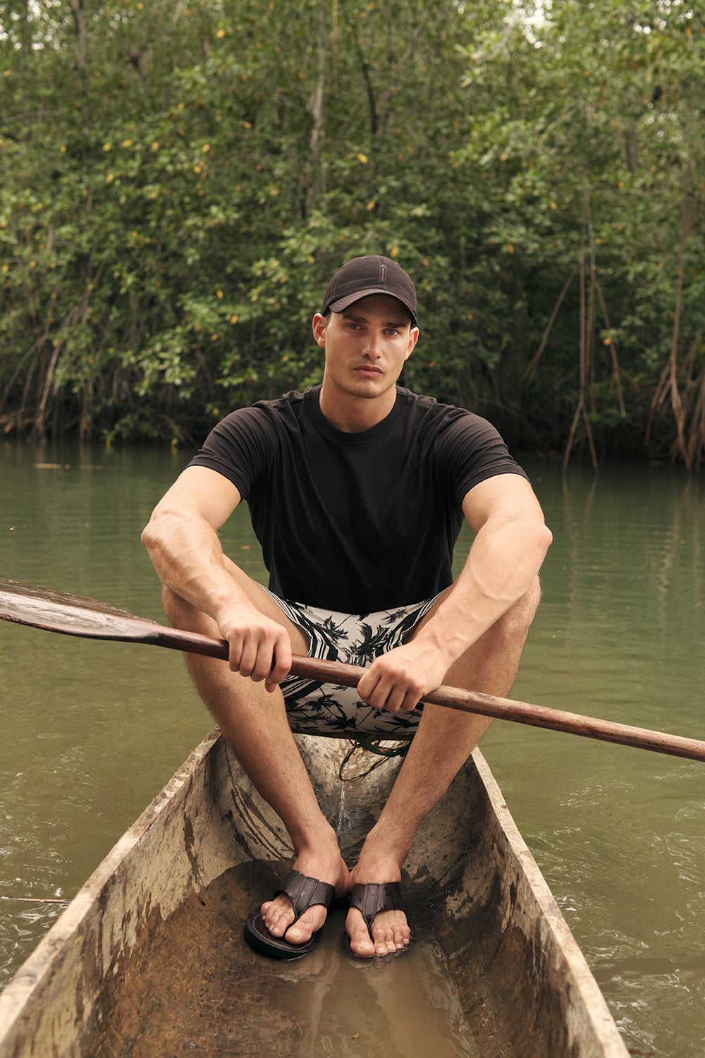 Two-tone ivory/black cotton cap with black embroidered Îlot logo. Colour black/ivory, Ref. AH43N61