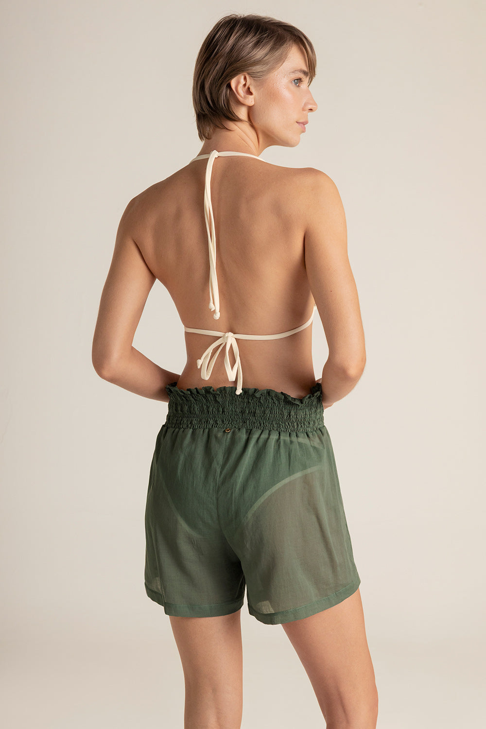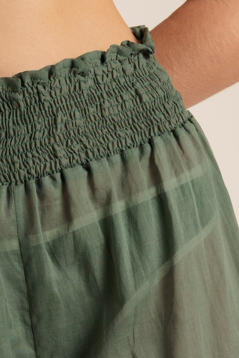 Shorts in 100% green cotton, shirred waistband, high rise, coin detail characteristic of our brand with "t" engraved in gold - dipped to avoid oxidation. Color green, Ref. 0A62V53