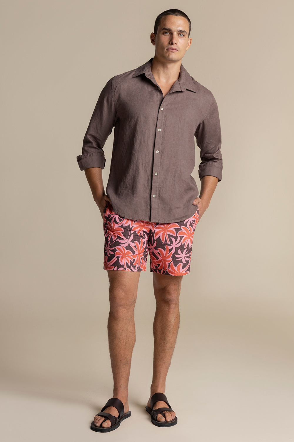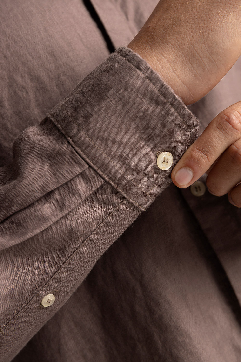 Mocha brown linen fiji shirt, long sleeves, slim fit, and classic collar.. Colour mocha brown, Ref. SH57C61