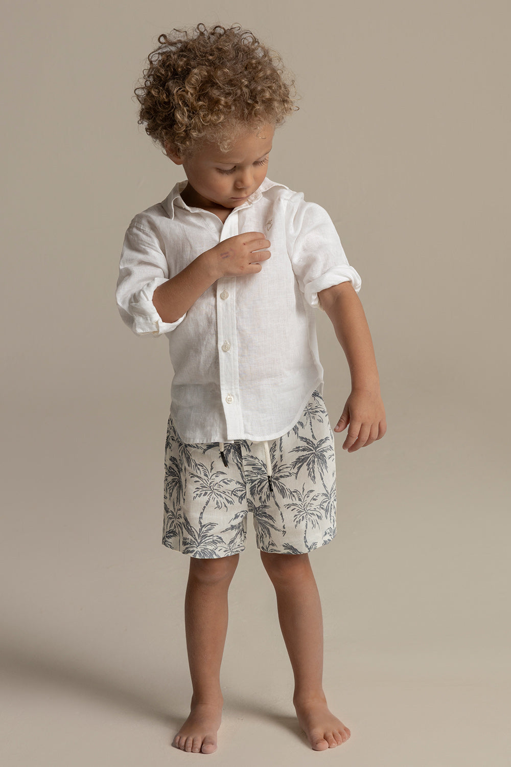 Kids off-white linen shirt, long sleeves, classic fit, classic collar, with embroidery detail. Colour off white, Ref. SK04B61