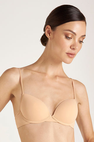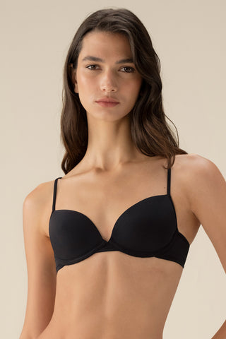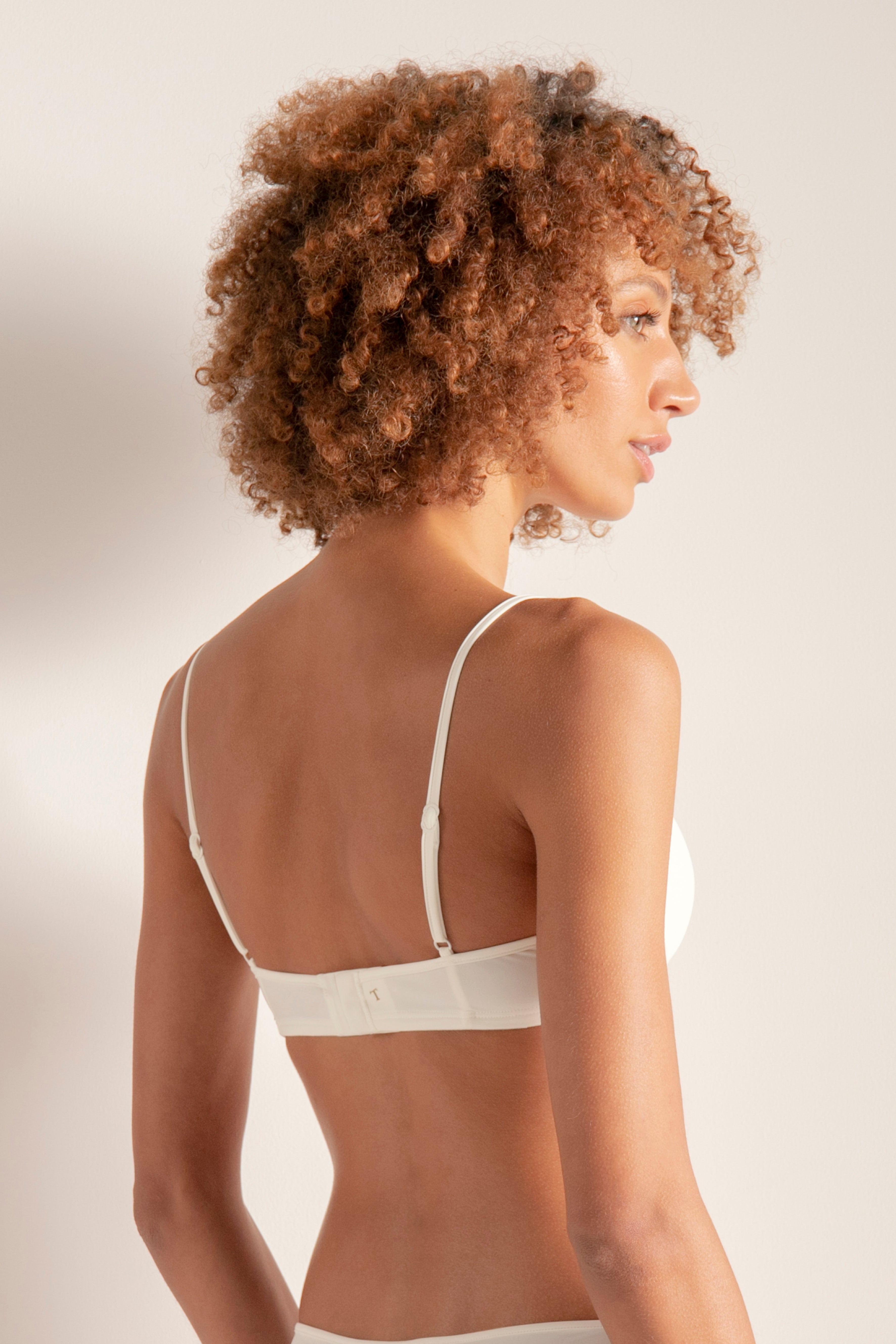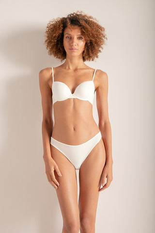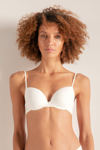 Sujetador de copa central con aros. Ideal para el uso diario en microfibra de nailon suave y de tacto frío. Tirantes termofusionados ajustables y espalda con ajuste de tres posiciones. Requiere lavado de manos con agua fría. Se presenta en Blanco Roto, Piel, Negro Ref. 2498012
