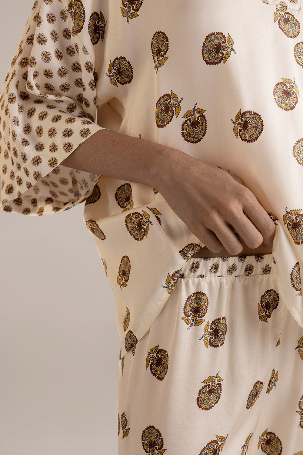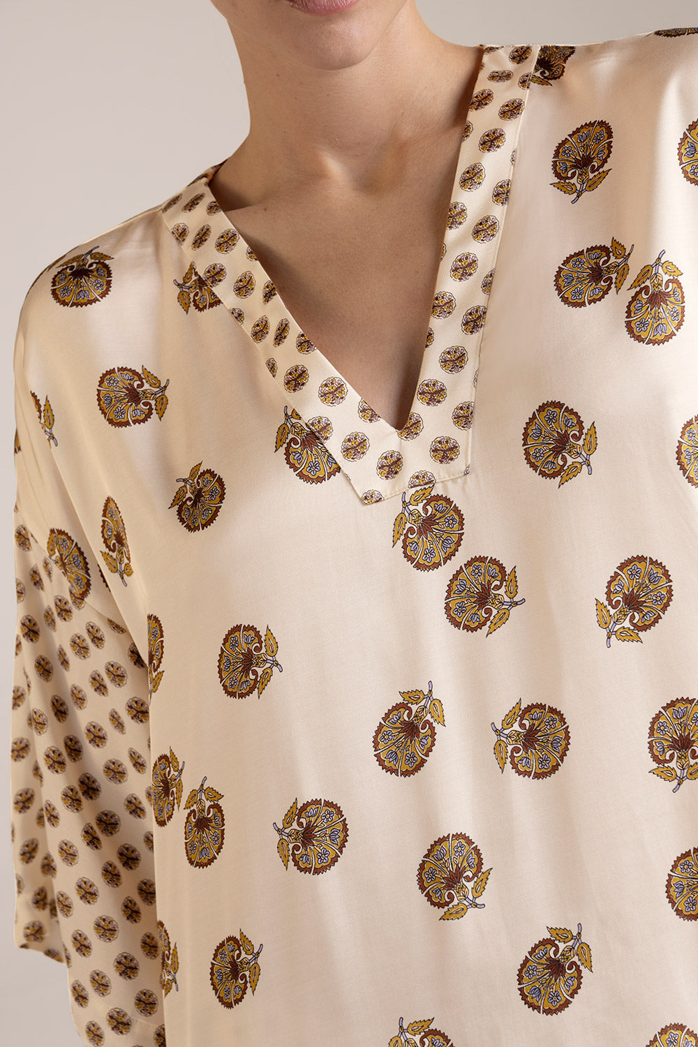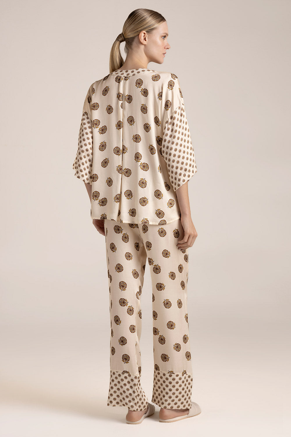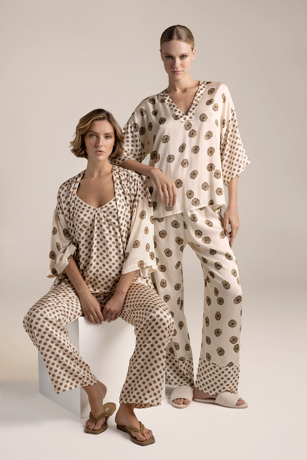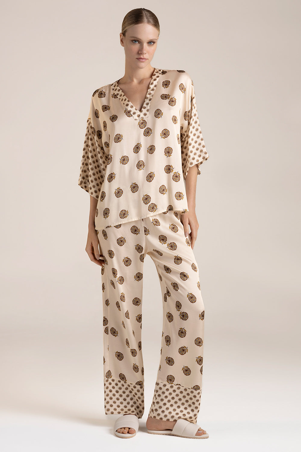 Pants pajama set in printed satin, v neck blouse with 3/4 sleeves, regular straight-leg trousers. Color print, Ref. 0556062