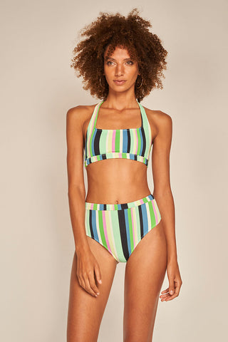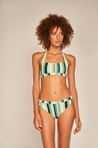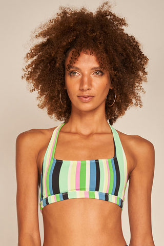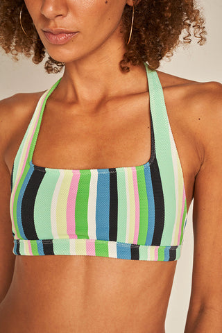 Top deportivo texturizado con estampado de rayas multicolor, tirantes fijos para ajustar al cuello y relleno extraíble. Producto con protección UPF 50+, Color Multicolor, Ref. 0B16023