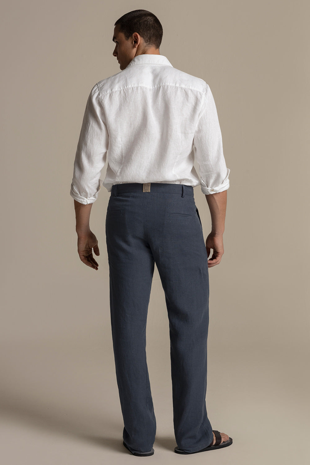 Canaria linen long sleeve classic fit shirt with back darts, front button opening, cutaway collar . Color white, Ref. SH41052